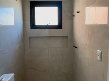 Banheiro social, mais 01 lavabo, sala de jantar/estar, cozinha, área de serviço, espaço gourmet, 4 vagas de garagem/box. Aberturas em alumínio ou pvc (branco) com persianas motorizadas com tela mosquiteiro nos dormitórios.