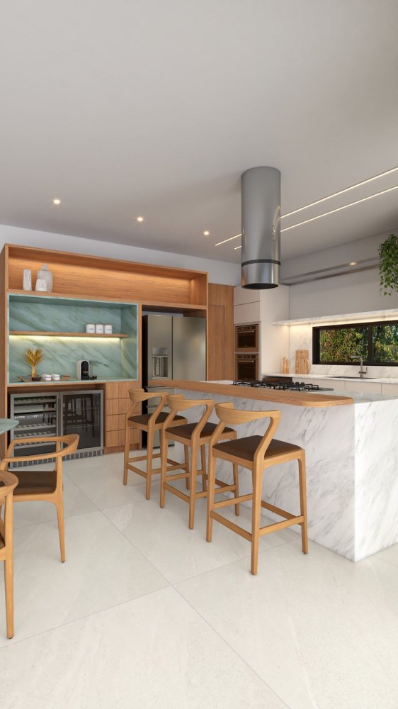 - Espaçosa cozinha com ilha e espaço gourmet integrado;