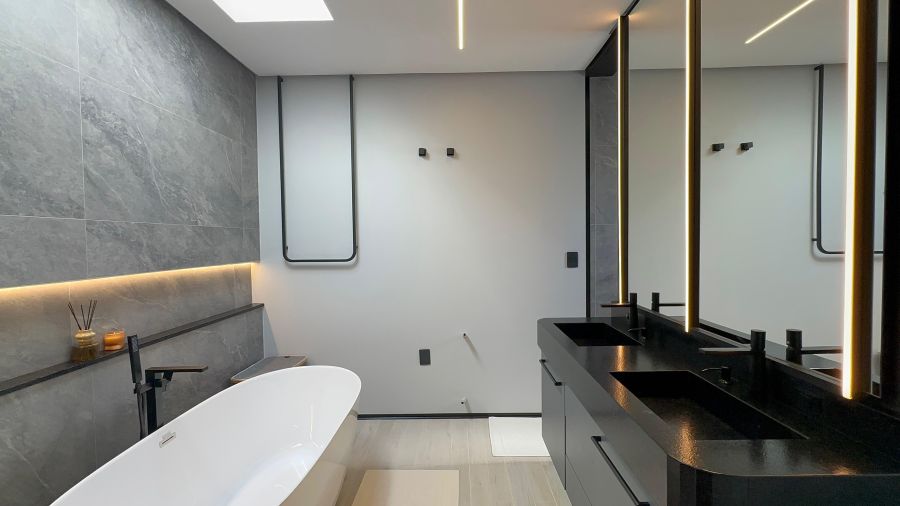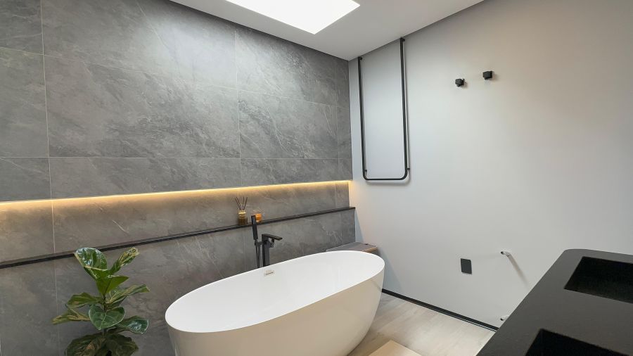 - 01 Suíte Master com closet, bancada dupla, banheira e chuveiro;