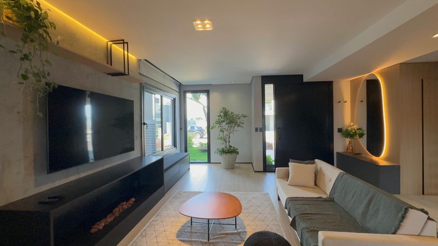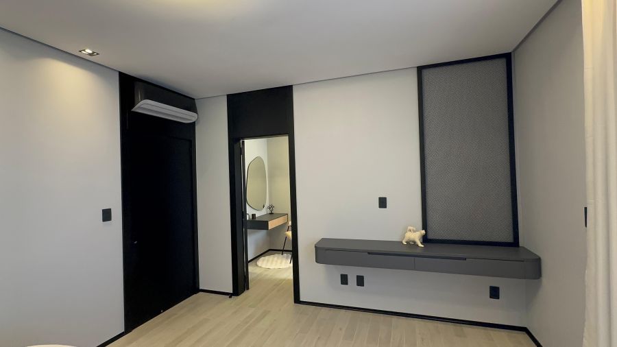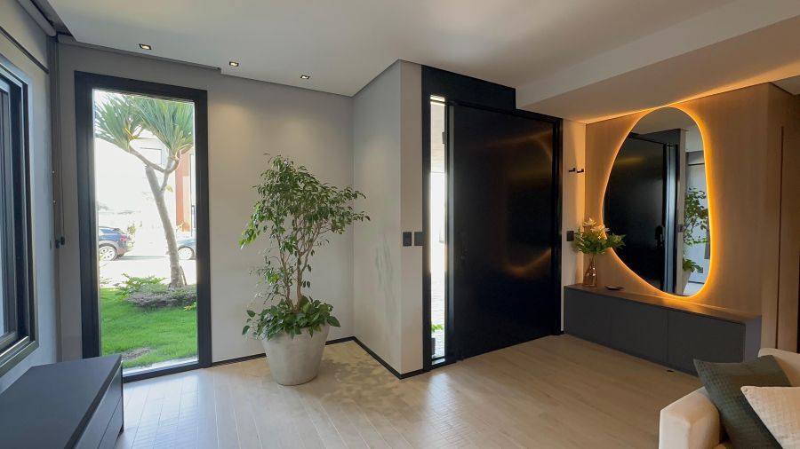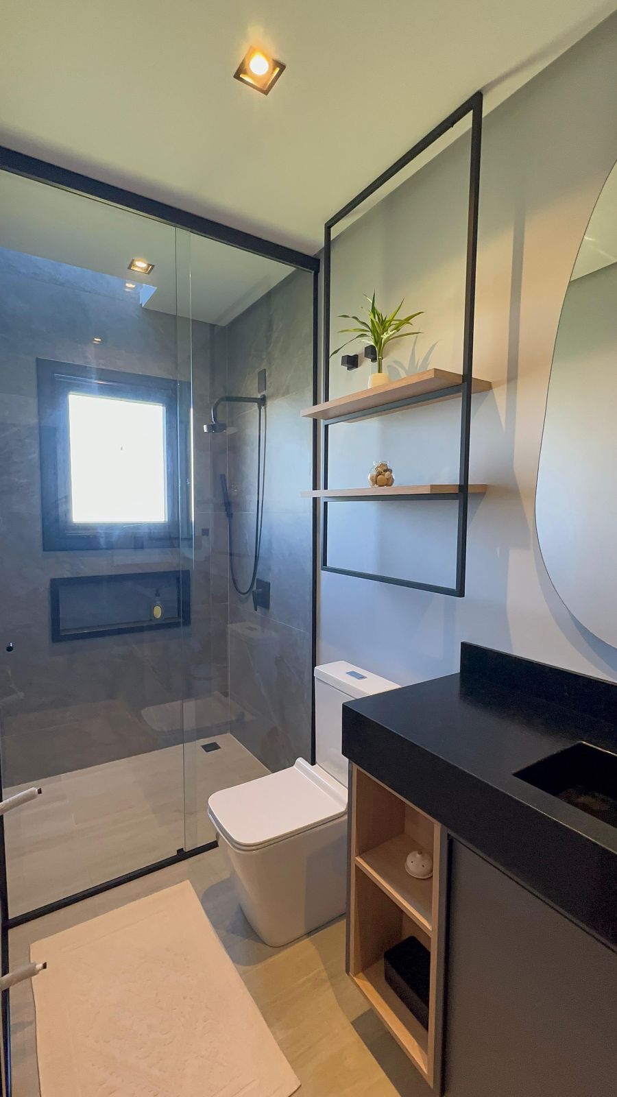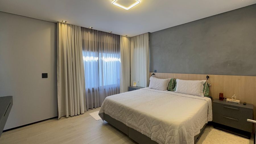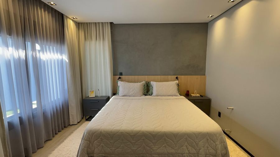 Com 4 suítes amplas, incluindo uma suíte no pavimento térreo — mais um home office —, o projeto privilegia a convivência, a iluminação natural e o máximo de conforto em cada ambiente.