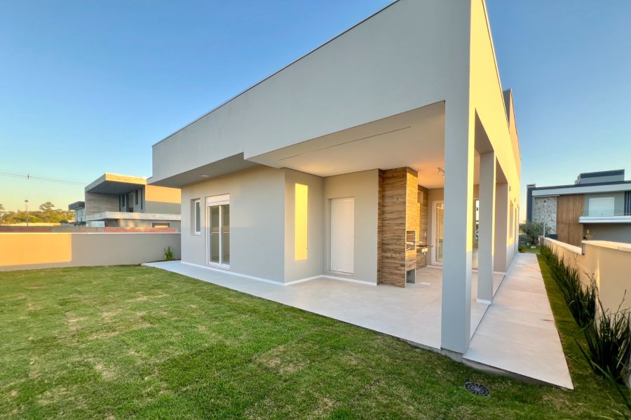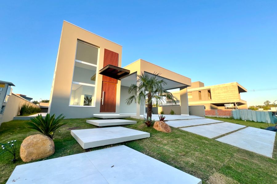 Arquitetura contemporânea e conforto definem este belíssimo sobrado novo, pronto para morar, localizado no exclusivo Condomínio Reservas do Lago, em Nova Santa Rita/RS.
