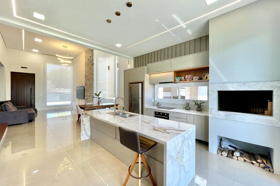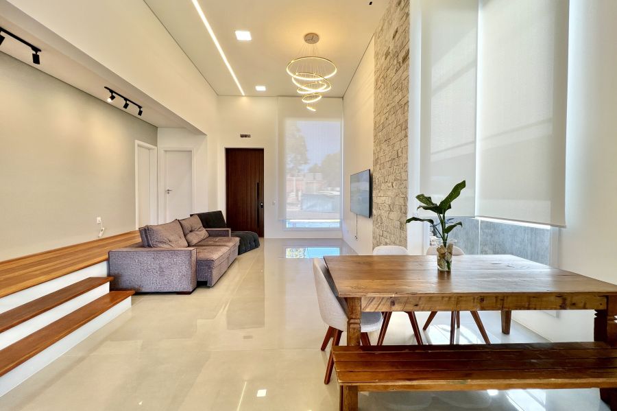Com projeto moderno e elegante, esta residência térrea possui 162,9 m² de área com espaços amplos, bem distribuídos e pensados para o dia a dia da sua família.