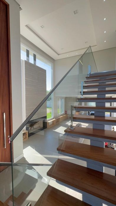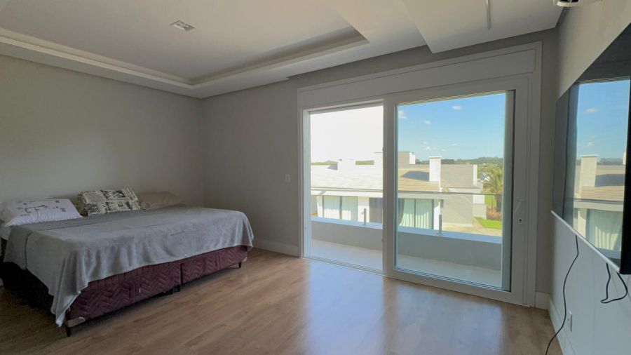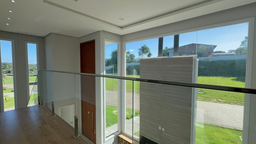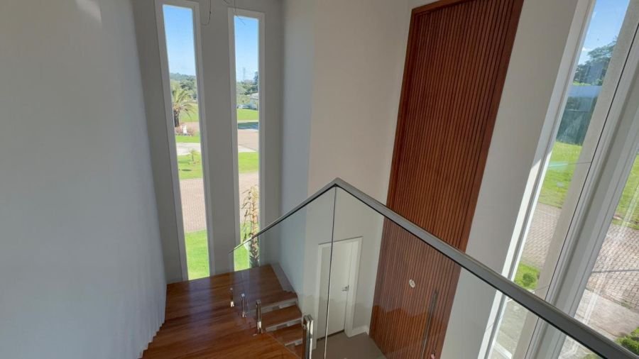No pavimento superior, são 4 dormitórios, sendo uma suíte master com closet, varanda e banheiro com espera para banheira, além de uma segunda suíte e mais dois dormitórios que compartilham um banheiro, todos com acesso a uma ampla sacada nos fundos.
